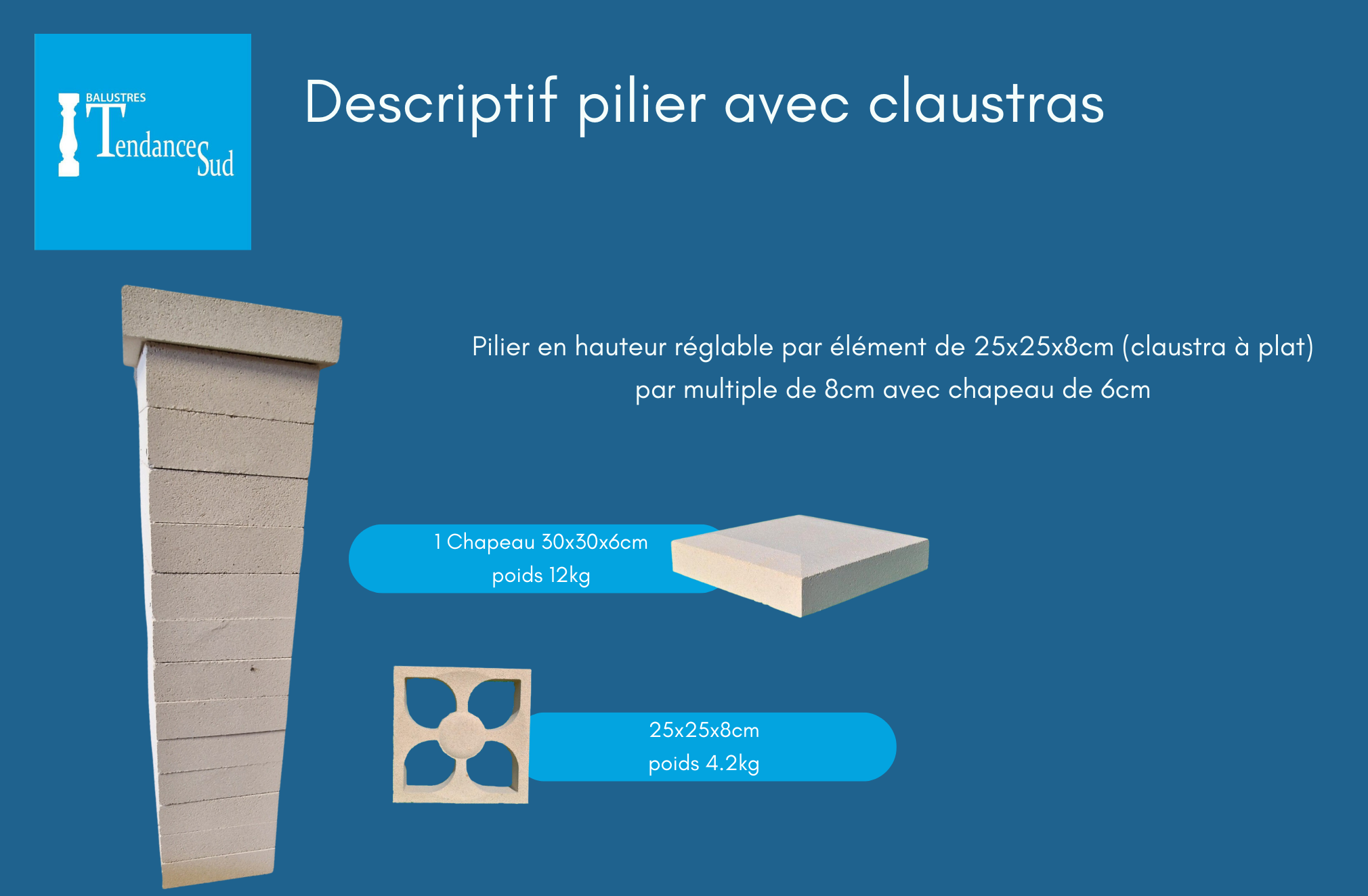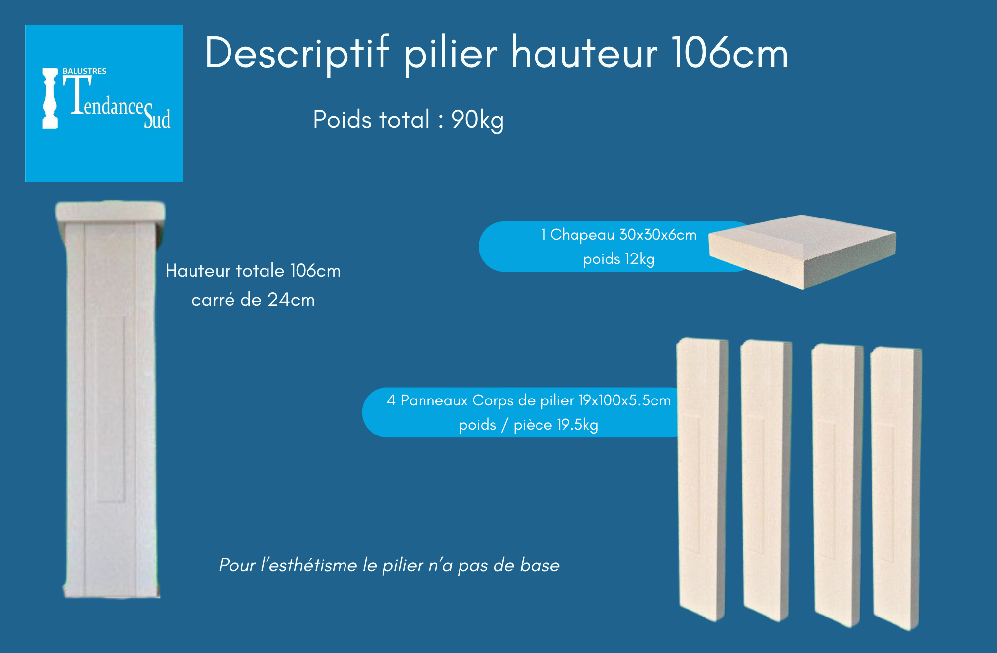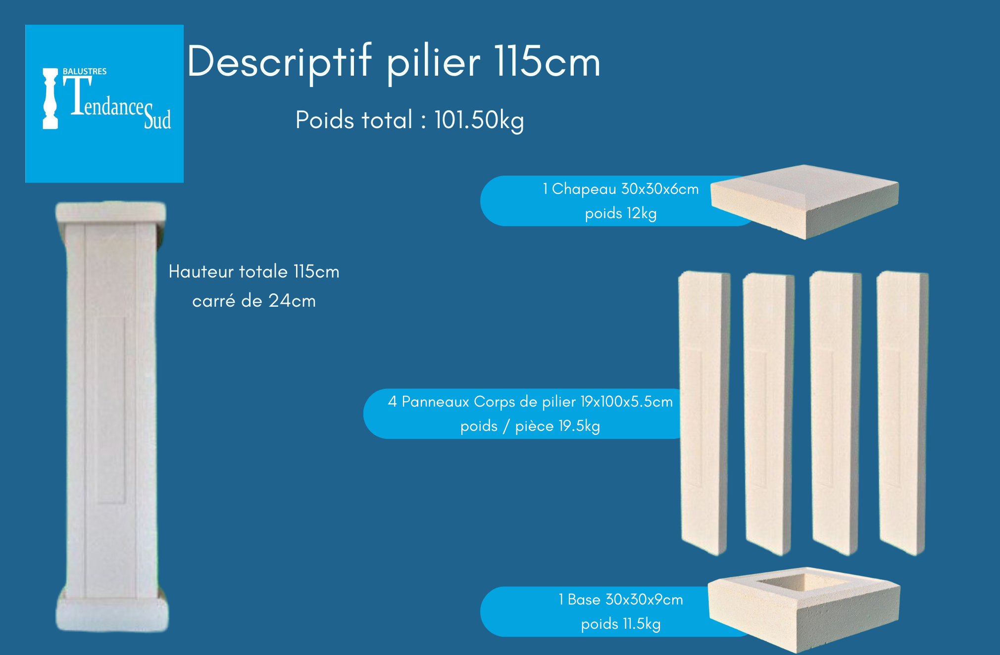 Vendu à la pièce le pilier est recoupable en hauteur il comprend :