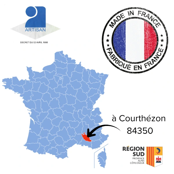 Cette gamme de balustres est fabriquée Artisanalement à 100% dans nos ateliers à Courthézon en pierre reconstituée de haute qualité ( selon la méthode du béton coulé) à partir de matières premières fabriquées essentiellement en France : des agrégats (carrières du Vaucluse) aux adjuvants (nord Ouest de la France), et les moules (une partie des moules sont fabriqués chez nous, le reste en Auvergne - Rhône Alpes ).